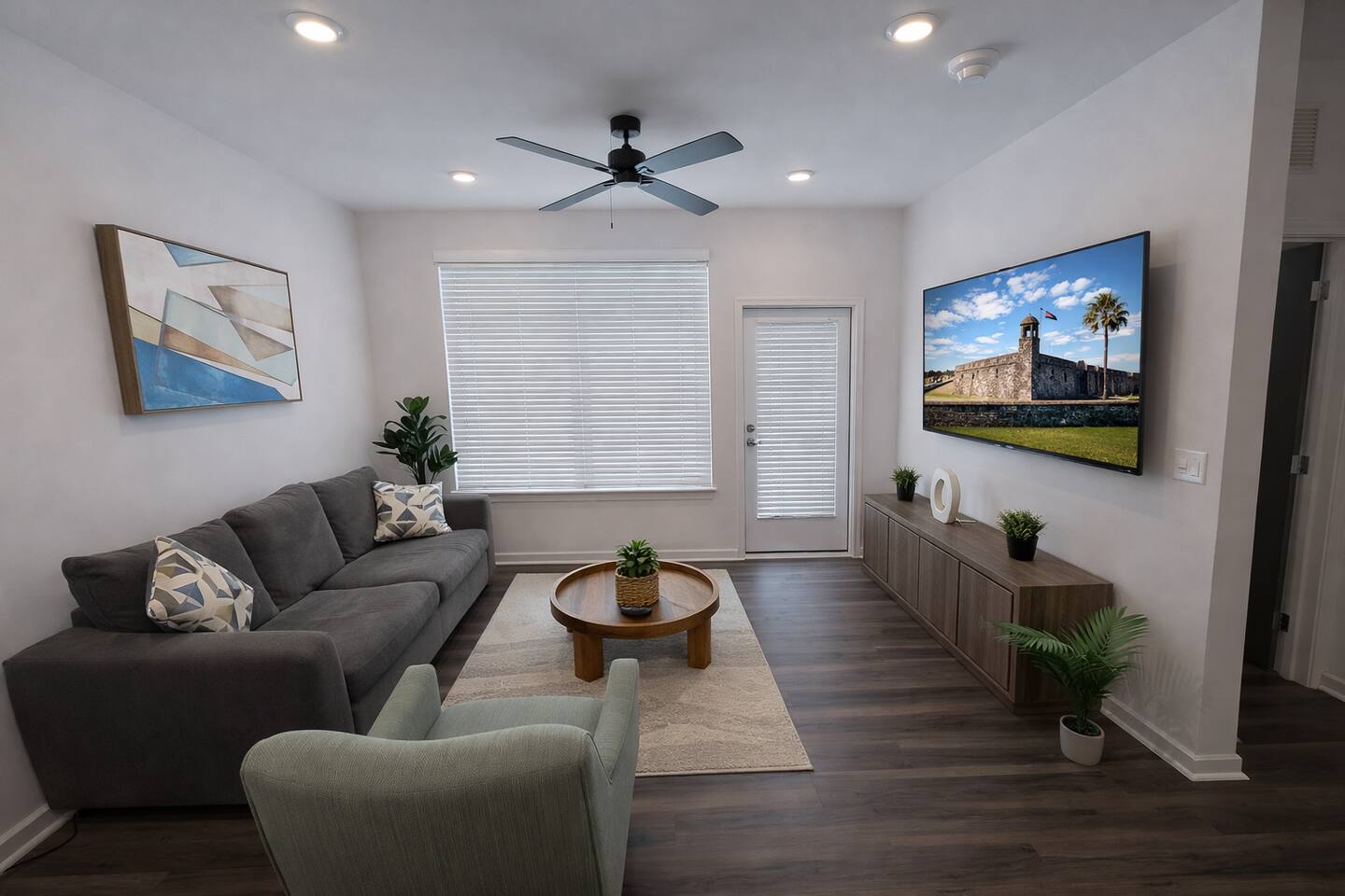 Experience St. Augustine from this stylish 1-bedroom apartment designed with professionals and remote workers in mind. With a comfortable King bed, high-speed Wi-Fi, a smart TV, and a private balcony, this space offers the ideal balance of productivity and relaxation during your stay. Whether you are in town for work, an extended assignment, a relocation stay, or simply visiting the oldest city in the U.S., you will enjoy a comfortable home base close to everything you need.