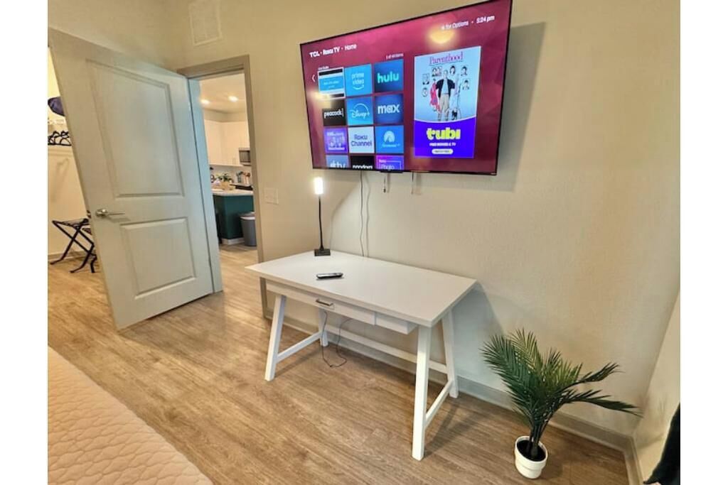 We are thrilled to have you as our guest and want to make sure your stay is enjoyable. To ensure a harmonious experience for everyone, please take a moment to review our house rules. Check-in & Check-out: 4:00 PM check-in, 11:00 AM check-out. Late check-out fee: $100. Communication: Contact us only through Airbnb messages. The leasing office cannot assist. No Parties: Strictly no parties or events. Violations result in immediate cancellation and a $1,000 fine. Minimum Age: Primary guest must be 21+. ID verification may be required. Respect & Quiet Hours: Keep noise down, especially from 10 PM - 8 AM. Strict No-Smoking Policy: This is a smoke-free community. Smoking is strictly prohibited inside the apartment, on balconies, in parking areas, at the pool, and in all common spaces. No exceptions will be made. Violations of this policy are subject to a minimum fine of $1,000 and may result in immediate termination of the stay. No-Pet Policy: Pets are not permitted on the premises under any circumstances. Bringing animals into the property without prior written authorization will result in a minimum fine of $500 and may lead to cancellation of the reservation. Package Delivery Policy: Guests must request guidance before scheduling any deliveries, as carriers are not permitted to deliver directly to the apartment door, and guests do not have access to the community’s package room. We strongly advise against using USPS, as it may result in undeliverable or unretrievable packages. We are not responsible for any packages delivered before check-in or after check-out. Guest Limit: Only registered guests may stay. Notify us of any changes. Cleanliness: Keep the space tidy. Excessive mess may result in additional cleaning fees. Appliances & Safety: Use the provided amenities responsibly. Lock doors/windows when leaving. Exterior cameras are in place for security. Be Neighborly: Respect the community—no loud music or disturbances. Eco-Friendly: Conserve energy by turning off lights and AC when not in use. Lost/Damaged Items: Report any damages immediately to find a solution together. By booking, you agree to follow these rules. Feel free to reach out if you have any questions ************************************************************************************* BOOK your perfect Jacksonville stay today! Enjoy a stylish space, top amenities, and a prime location near shopping, dining, and attractions. RESERVE NOW! *************************************************************************************