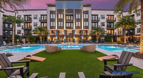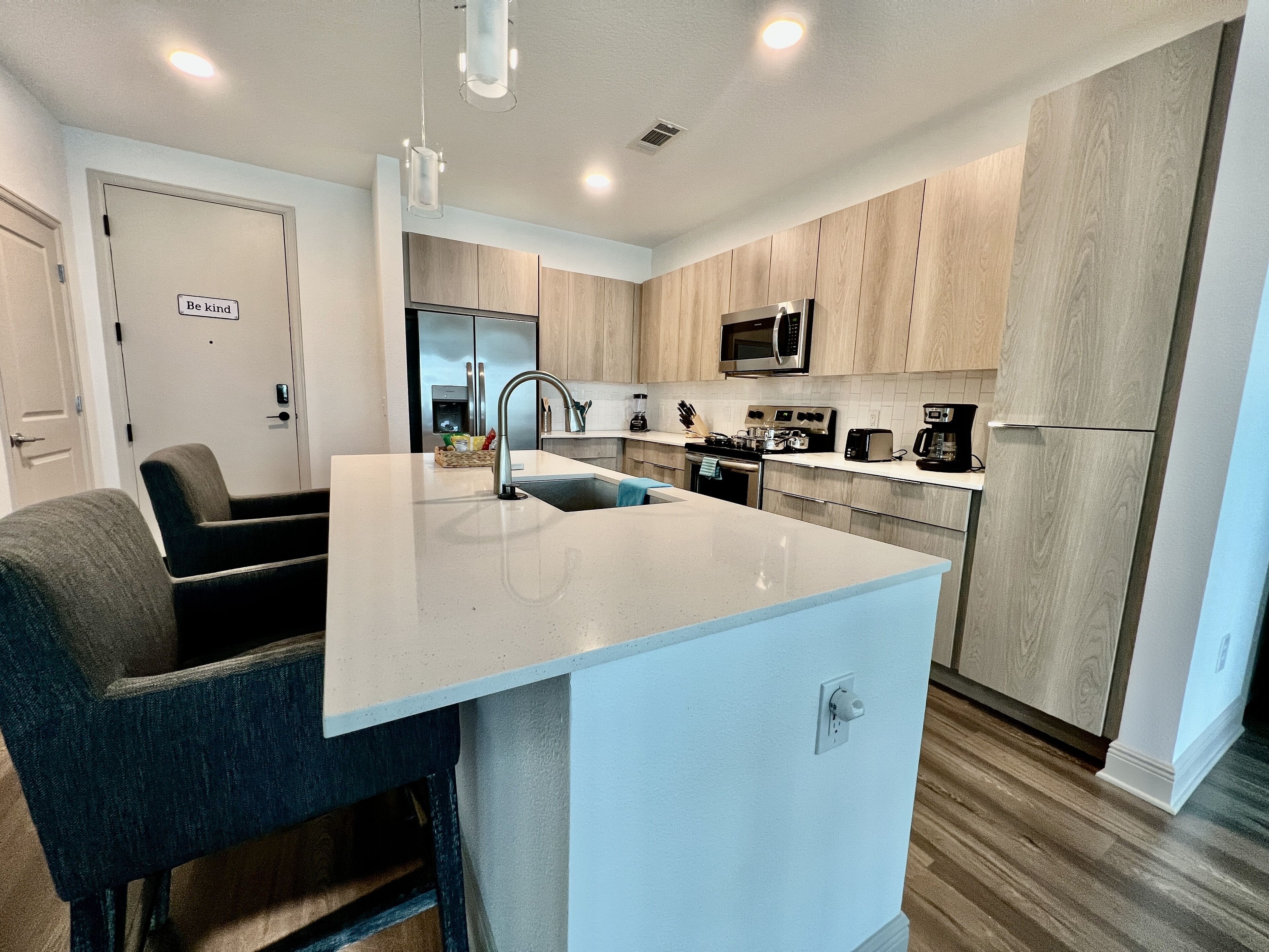 Enjoy the comfort of a spacious, luxury apartment designed just for you. With two large master suites, King beds, and private bathrooms, you’ll have all the space you need to relax and recharge. You can lounge by the resort-style pool, stay active in the state-of-the-art gym, or explore nearby shops and dining at the Town Center. You’re just 15 min from the beach and close to Mayo Clinic. With easy access to I-295, you’ll love how convenient everything is around you in this prime location